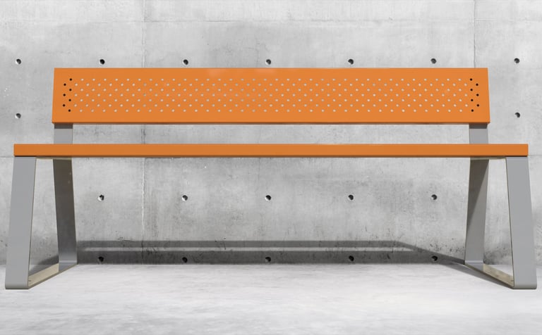 Assento versátil para uso tanto em ambientes externos quanto internos, confeccionado em aço carbono com revestimento de galvanização e pintura eletrostática. Destaca-se pela sua resistência elevada, apresentando assento e encosto com espessura de 2 mm, além de pés robustos com 6,35 mm. Este banco é autoportante e pode ser facilmente fixado, proporcionando flexibilidade em sua utilização.