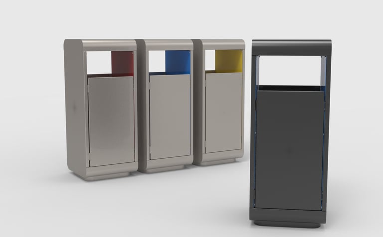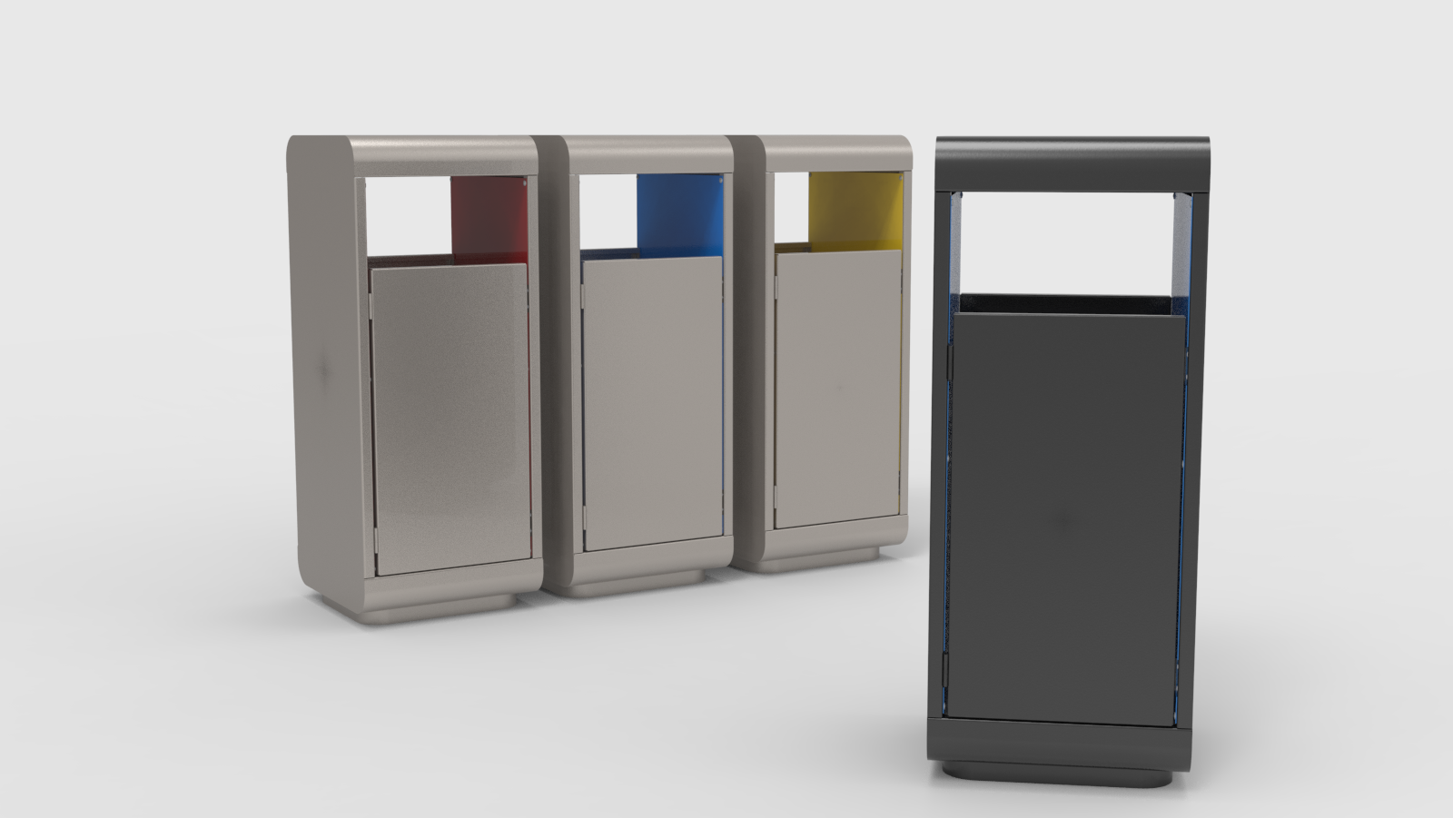 A lixeira foi concebida para atender tanto a ambientes externos quanto internos, sendo confeccionada em aço carbono com revestimento de galvanização e pintura eletrostática. Destaca-se por sua notável estética, sendo construída com uma espessura de 1,5 mm e contando com um refil interno em aço galvanizado. Seu design transmite elegância e beleza, proporcionando uma contribuição significativa para a composição de ambientes sofisticados. Além de sua aplicação individual, a lixeira pode ser disposta em grupo para facilitar a coleta seletiva.