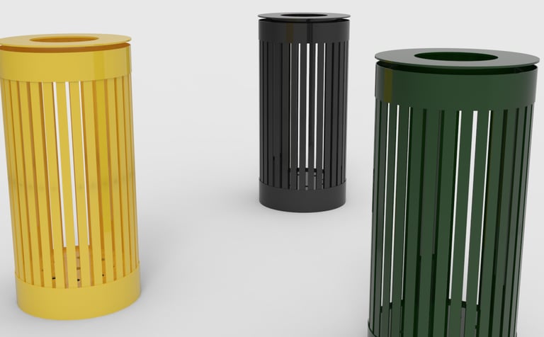 Lixeira projetada para atender ambiente externo, é fabricada em aço carbono com revestimento de galvanização e pintura eletrostática. Destaca-se por sua notável resistência, construída com espessura de 3,00 mm e tampa em 4,75mm, pode ser fixada ao piso. Seu design transmite força e resistência, proporcionando uma contribuição significativa para a composição de ambientes com alto fuxo de pessoas.