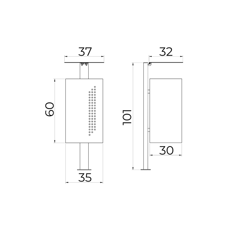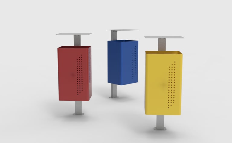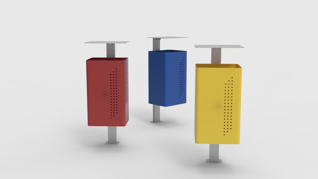 A lixeira foi concebida para atender ambientes externos, sendo confeccionada em aço carbono com revestimento de galvanização e pintura eletrostática. Destaca-se por sua praticidade, sendo construída com uma espessura de 1,5 mm. Seu design transmite elegância e beleza, proporcionando uma contribuição significativa para a composição de ambientes sofisticados. Além de sua aplicação individual, a lixeira pode ser disposta em grupo para facilitar a coleta seletiva.